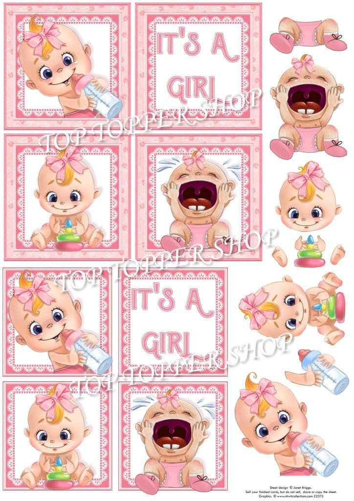 It's a Girl Squares Decoupage printed sheet